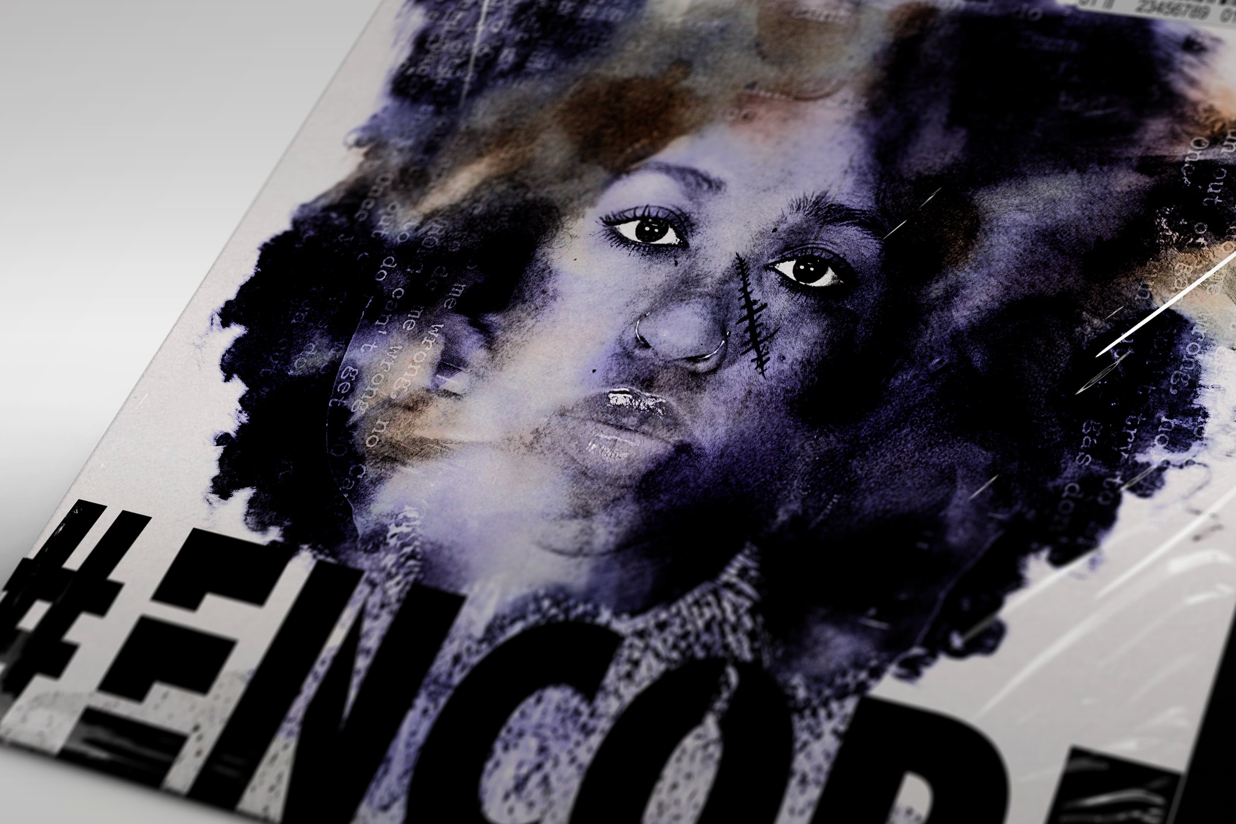 I wanted the visuals to capture that contrast. I started with watercolor scans to bring in a handmade, unpredictable, but delicate feel. I layered the scans with high-contrast images to create a sharper, bolder tone. The two textures together mirrors her music: softness colliding with bold emotion.