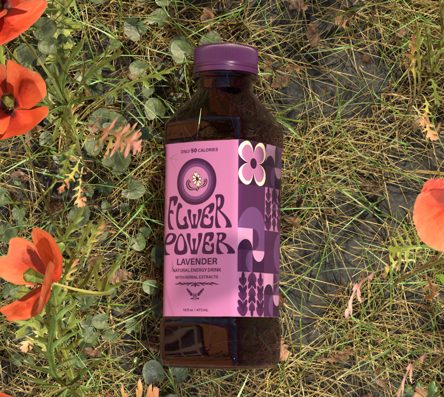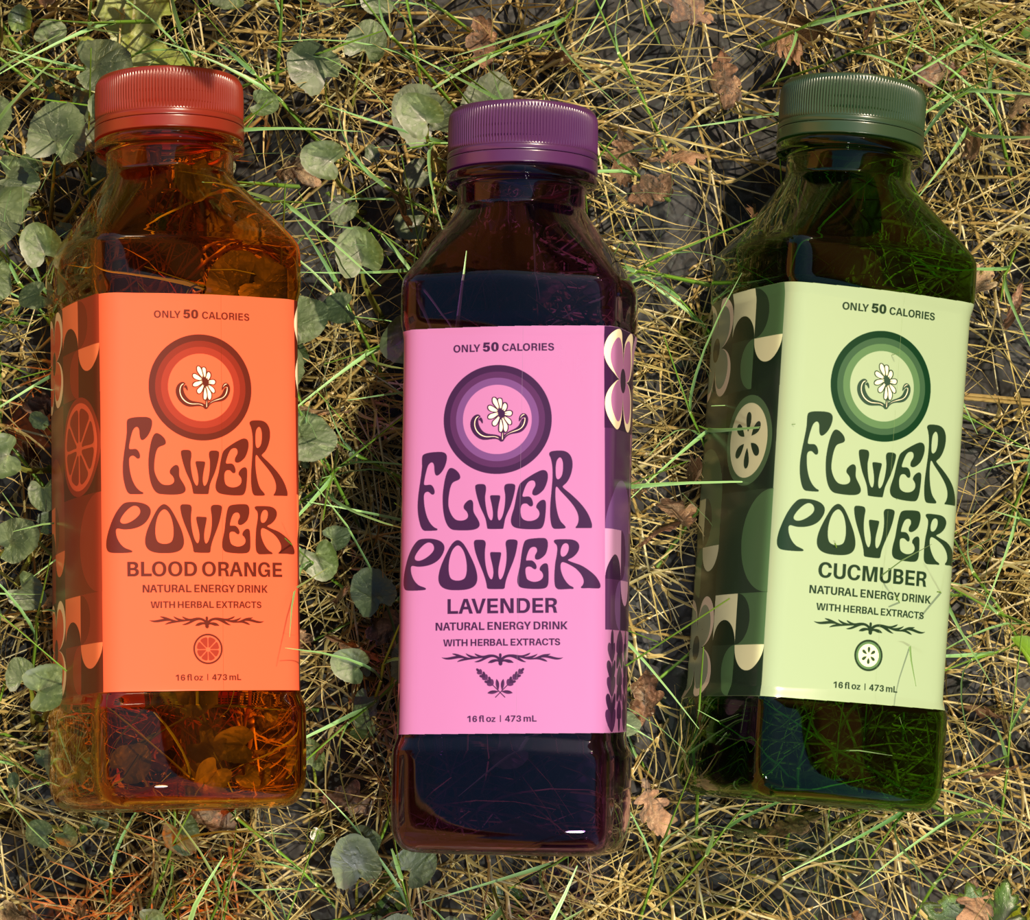 Flwer Power is a natural energy drink brand featuring herbal flavors like lavender, cucumber, and blood orange. The drink is a carbonated energy boost similar to kombucha, where every element works to energize the body while staying clean, plant-based, and refreshingly natural. Inspired by the vibrant spirit of the '70s, Flwer Power blends wellness with a retro edge–crafted for those who want to feel good, stay grounded, and vibe higher.