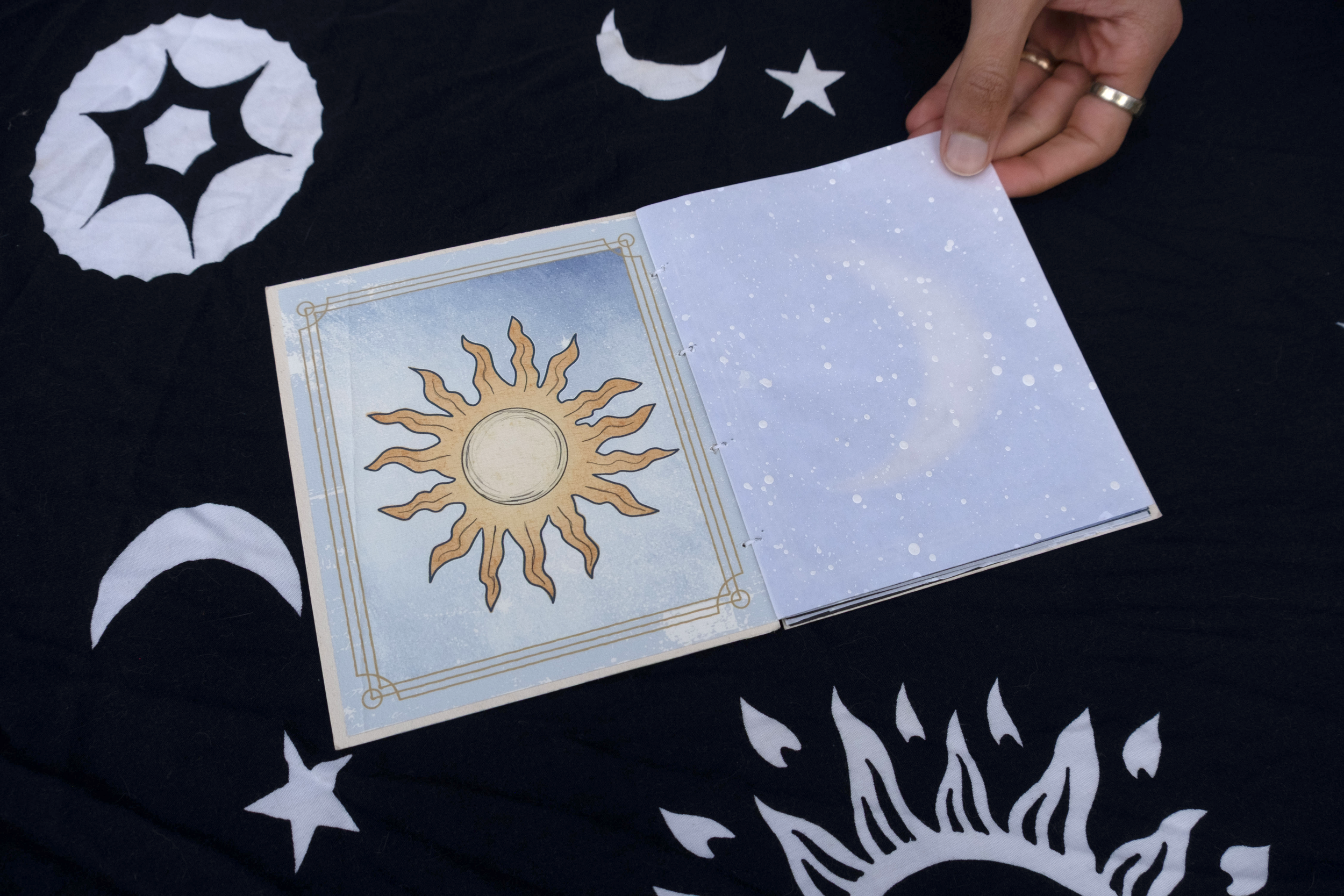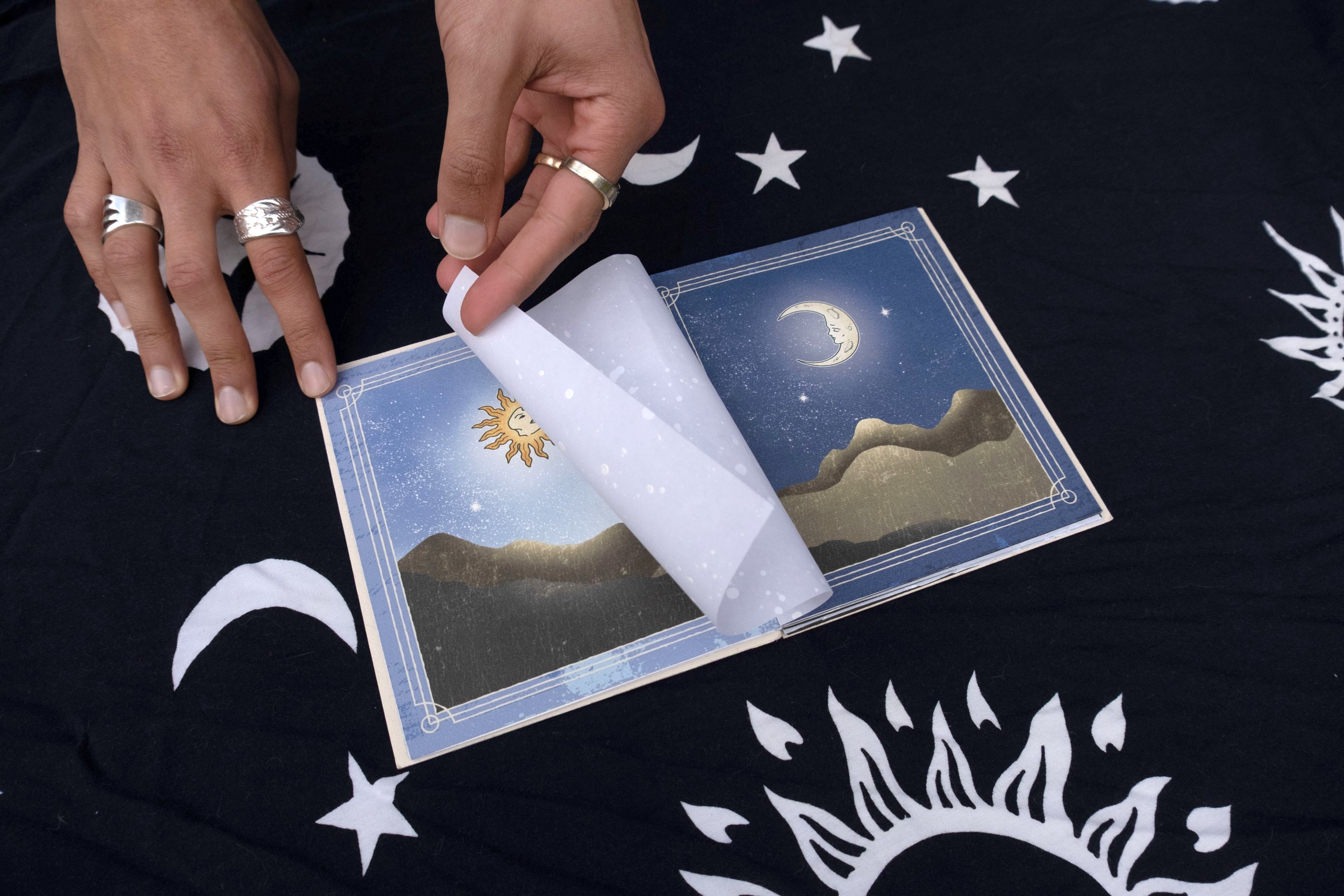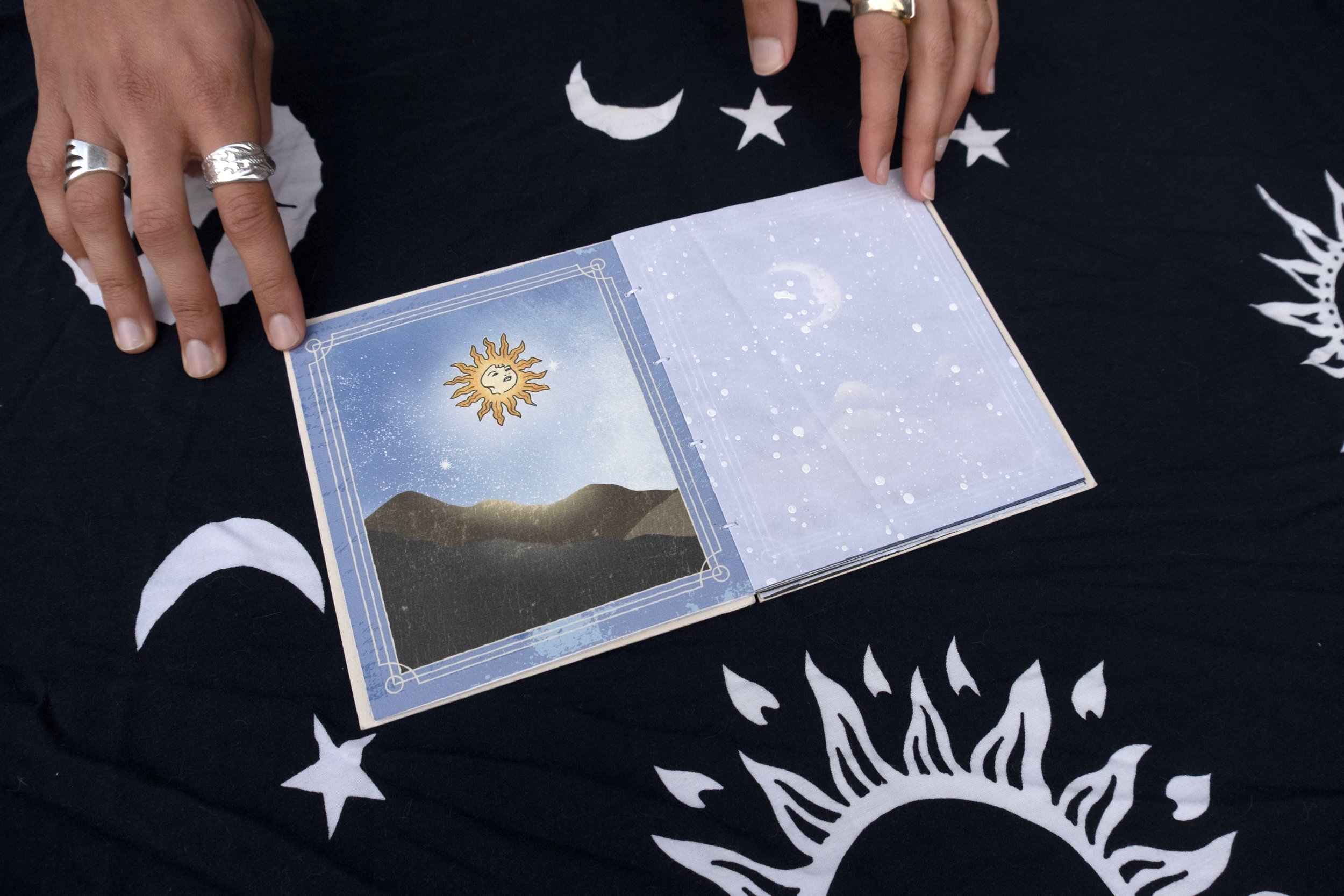 In this short story, the sun and moon are portrayed as star-crossed lovers, always near but never close enough to touch. I used translucent pages in between each spread to represent the longing that exists in the space between them. Loving someone just beyond reach. Without using text, I wanted to showcase how their emotions could be felt through color, light, and the shifts in atmosphere between them.