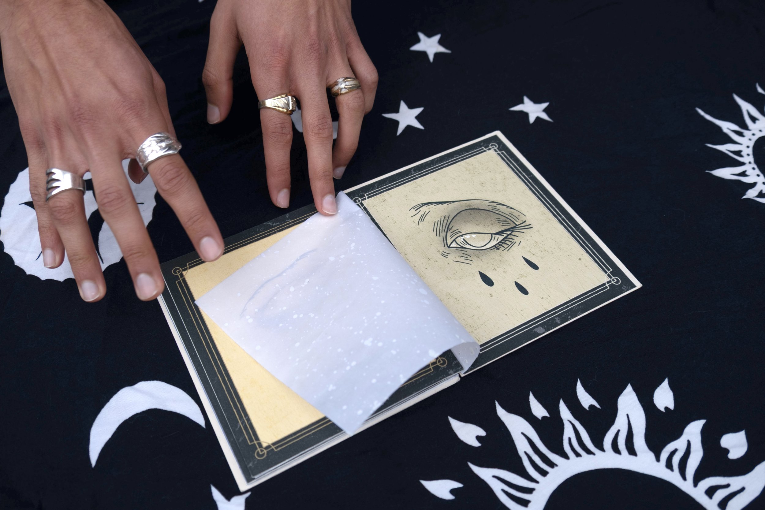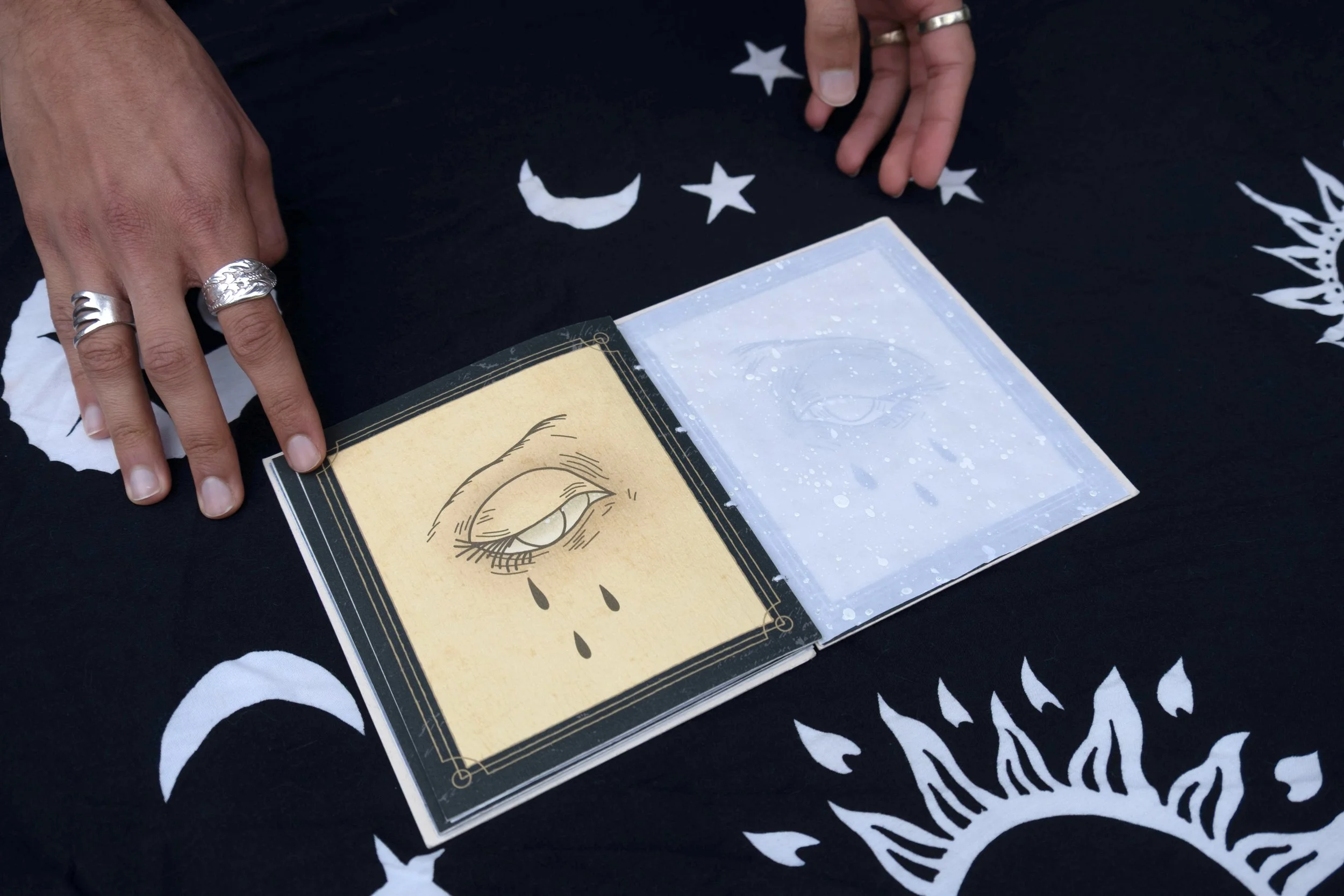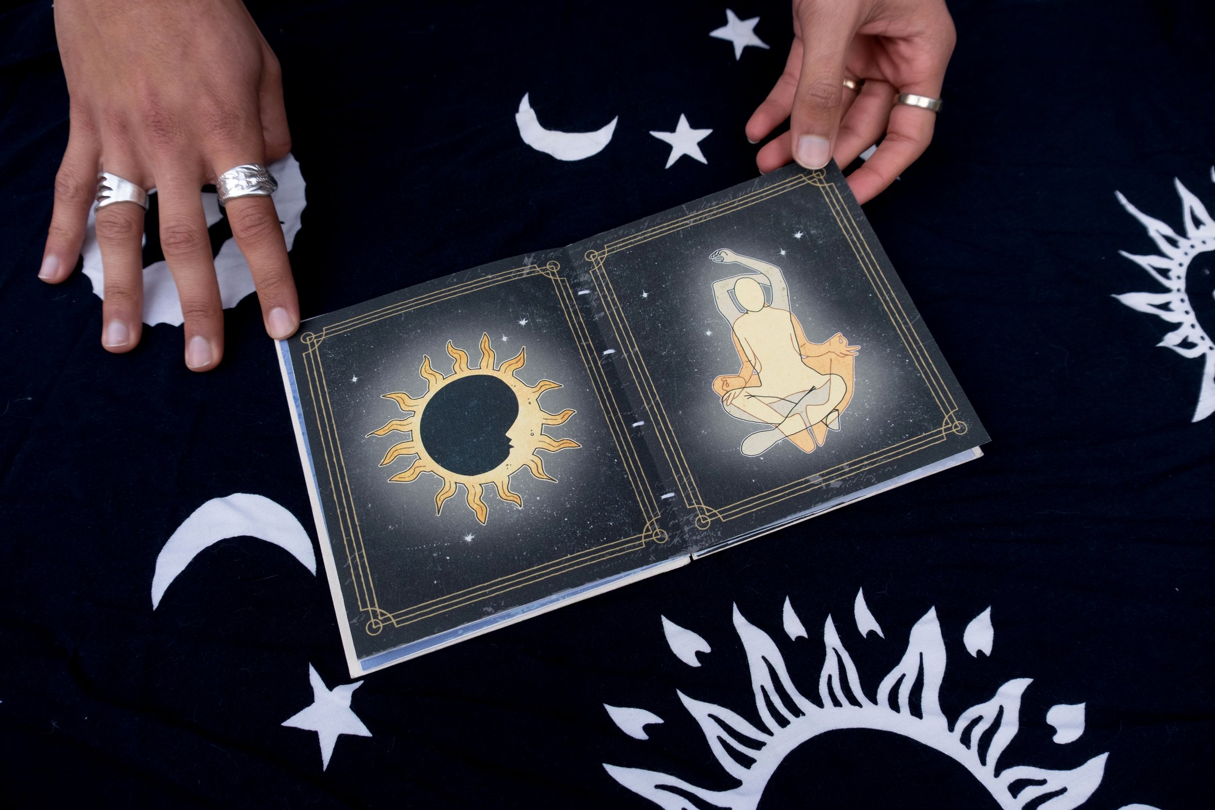 In this short story, the sun and moon are portrayed as star-crossed lovers, always near but never close enough to touch. I used translucent pages in between each spread to represent the longing that exists in the space between them. Loving someone just beyond reach. Without using text, I wanted to showcase how their emotions could be felt through color, light, and the shifts in atmosphere between them.